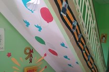 Творческая группа педагогов нашего детского сада оформили в холле «Стену Памяти» с фотографиями участников Великой Отечественной войны. Весь коллектив, родители и дети нашего сада, приносили фото и документы своих прадедов и рассказывали про их участие в ВОВ.