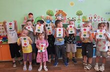 Ребята закрепили знания о светофоре и дорожных знаках "Пешеходный переход", "Зебра", "Автобусная остановка", выполнили аппликацию. Рассказали зайке о правила дорожного движения и проиграли все правила в игре «Светофор». Дети очень внимательно слушали, отвечали на вопросы и с удовольствием водили зайку по пешеходному переходу. После занятия дети самостоятельно рассматривали картинки со знаками дорожного движения./"Куян һәм юл билгеләре "янә"Кояшкай" төркемендә тәрбияләнүчеләрдә кунакта. Бүген педагог О.В. Полякова балаларны юл хәрәкәте кагыйдәләре белән таныштыруны дәвам итте. Балалар светофор һәм "җәяүлеләр кичүе", "Зебра", "автобус тукталышы" юл билгеләре турында белемнәрен ныгыттылар, аппликация ясадылар. Зайкага юл хәрәкәте кагыйдәләре турында сөйләделәр һәм «Светофор»уенында барлык кагыйдәләрне оттырдылар. Балалар игътибар белән тыңладылар, сорауларга җавап бирделәр һәм Куянны җәяүлеләр кичүеннән рәхәтләнеп йөрттеләр. Дәрестән соң балалар юл хәрәкәте билгеләре төшерелгән рәсемнәрне үзләре карадылар. -
