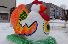 Любимому городу "Петушок" от "Рябинушки"... 21.12.2017 Сегодня творческая группа детского сада "Рябинушка" подарила любимому городу снежную скульптуру символа уходящего года "Петуха"...