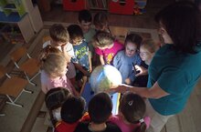 В старшей группе " Ладушки" прошло познавательное занятие " Почему происходит смена дня и ночи?" Сутки - это единица измерения времени, приблизительно равная периоду обращения Земли вокруг своей оси. В обиходе сутки часто называют днем. Дети знают, что сутки делятся на утро, день, вечер и ночь. Но почему происходит смена дня и ночи они хотели бы узнать.
