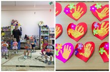 В младшей группе «Солнышко» с любовью сделали красивые поздравительные открытки, поделки и вручили мамам с пожеланиями: «Всегда любить, жалеть, помогать, ухаживать и крепко, крепко целовать».