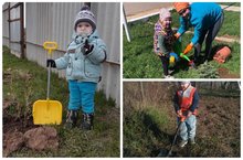 Группа «Радуга» приняла участие в акции «Сад Памяти». Воспитанники группы вместе с родителями, у себя на приусадебном участке, в честь прадедов, высаживали деревья.