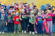 Сегодня воспитанники детского сада "Планета детства" вместе с инструктором по ФК Тимиряевой С.Е. и педагогами Васильевой А.В. и Рамазановой Г.А. участвовали в благотворительном забеге, который проходил в рамках марафона "Цепная реакция".