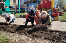 25 апрельдә "Елмаю" ның 2 нче кече төркеме тәрбияләнүчеләре Бөтенроссия Эколатлар көнендә катнаштылар. Балалар белән бергә төркем тәрбиячесе О.Г. Сайранова балаларга җирне бушатырга һәм чәчәкләр утыртырга тәкъдим итә.