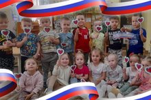 Накануне празднования Дня России в старшей группе «Пчёлка» (воспитатель Долгова Е.П.) прошло мероприятие. Утро воспитанники встретили зарядкой под музыку и слова В. Осошника «Мы дети твои, Россия!». Была проведена беседа «Наша Родина - Россия» с использованием презентации, в ходе которой воспитанники познакомились с понятиями «Родина», «флаг», «герб», «гимн». Затем дети внимательно рассмотрели российский флаг и выполнили свой «Российский флаг».