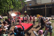 Радостно, звонко, тепло и красочно прошёл главный праздник детства в группах "Ладушки","Непоседы","Сказка","Родничок".Все педагоги старались сделать так, чтобы этот праздник надолго запомнился детям. Мы постарались в этот день создать праздничную атмосферу и порадовать детей весёлыми играми, танцами, фокусами и ,конечно же ,мыльными пузырями.