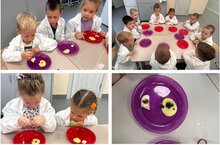 Дети старшей группы сегодня в лаборатории проводили эксперимент с йодом и крахмалом под руководством воспитателя Камалиевой Л.Д.. Ребята познакомились с новым пищевым продуктом крахмал. Выявили его наличие в продуктах при помощи йода...