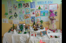 Холл дошкольного учреждения поразил своим разнообразием конкурсных поделок на тему «Зимняя фантазия».