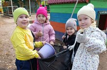 А у нас листопад! Осень золотая! Листья кружатся, летят, землю засыпая. Мы субботник провели. Очень все старались, взрослые, и дети вместе убирались. Много листьев нагребли, Потрудились от души!