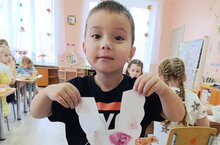 Иң кечкенә балалар бакчасы халкы беренче шедеврларын һәм аларның ярдәмчесен төсле карандаш белән ясый
