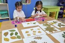 Воспитанники старшей группы «Семицветик» совместно с воспитателем Каримовой К.К. создавали гербарий из листьев своего участка.