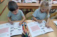 Беренче Хәрәкәт программасы буенча эш кысаларында әзерлек төркеме шәкертләре эш дәфтәрендә эшләргә өйрәнәләр..... -