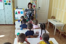 Урта төркемдә тәрбияче Л.М. Бадыкова математика дәресе үткәрә.