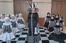 Сегодня наш детский сад представлял шахматную зону на августовской конференции работников образования Менделеевского района.Наши дети одетые в красивые костюмы пешек и Шахматная королева рассказали делегации о том как это замечательно и интересно играть в шахматы.