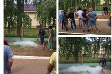 з июля в нашем детском саду прошли учения по примению первичных средств пожаротушения.Провел мероприятме инспектор отделения надзорной деятельности и профилактической работы УНД ГУ МЧС России по РТ Галиуллин Дамир Анварович и заместитель заведущей по АХЧ Тазиева Ильсояр Саетжановна.