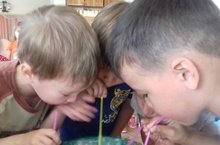 На праздник мыльных пузырей собрались самые юные воспитанники «Золотой рыбки», вооружившись всеми принадлежностями. .