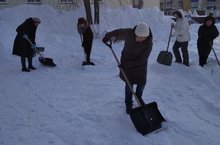 Сегодня сотрудники гимназии участвовали в новогоднем субботнике по очистке территории от снега.