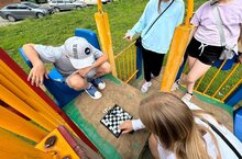 5 день на Дворовой площадке по улице Менделеева Ахметзянова Зарина с ответственным Элиной Александровной предложили ребятам научиться играть в шахматы...