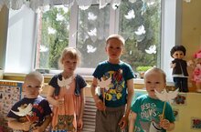 В преддверии 9 Мая наша дошкольная группа решила поддержать Всероссийскую акцию "Окна Победы", украсив окна группы символом мира - голубями.