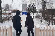 Волонтерский отряд "Забота" очистил от снега памятник погибшим во время Великой Отечественной войны...