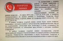 В соответствии с планом работы с целью выявления и анализа системных проблем в сфере реализации прав ребенка на семью и семейные связи, оказания гражданам консультативной помощи по данным вопросам 22 марта 2019 года с 9.00 до 16.00 года в Аппарате Уполномоченного по правам ребенка в Республике Татарстан будет организована работа «горячей линии» по телефонам 8(843) 236-61-26, 236-61-24, 236-61-49... -