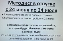 Методист по дошкольному образованию в отпуске с 24 июня по 24 июля.
