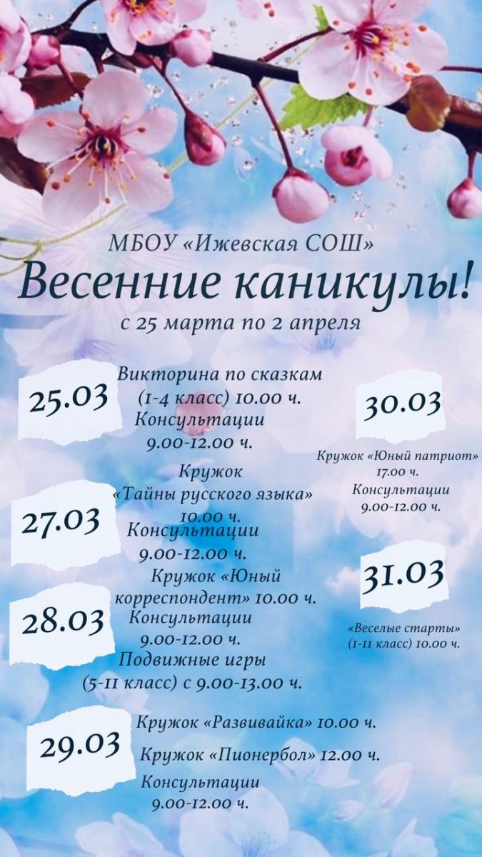 «Весенние каникулы» 21.03.2023