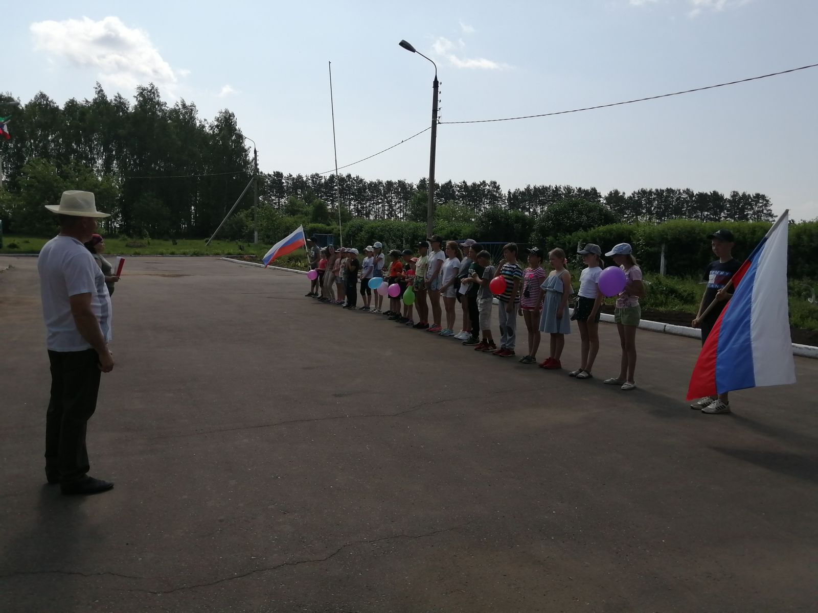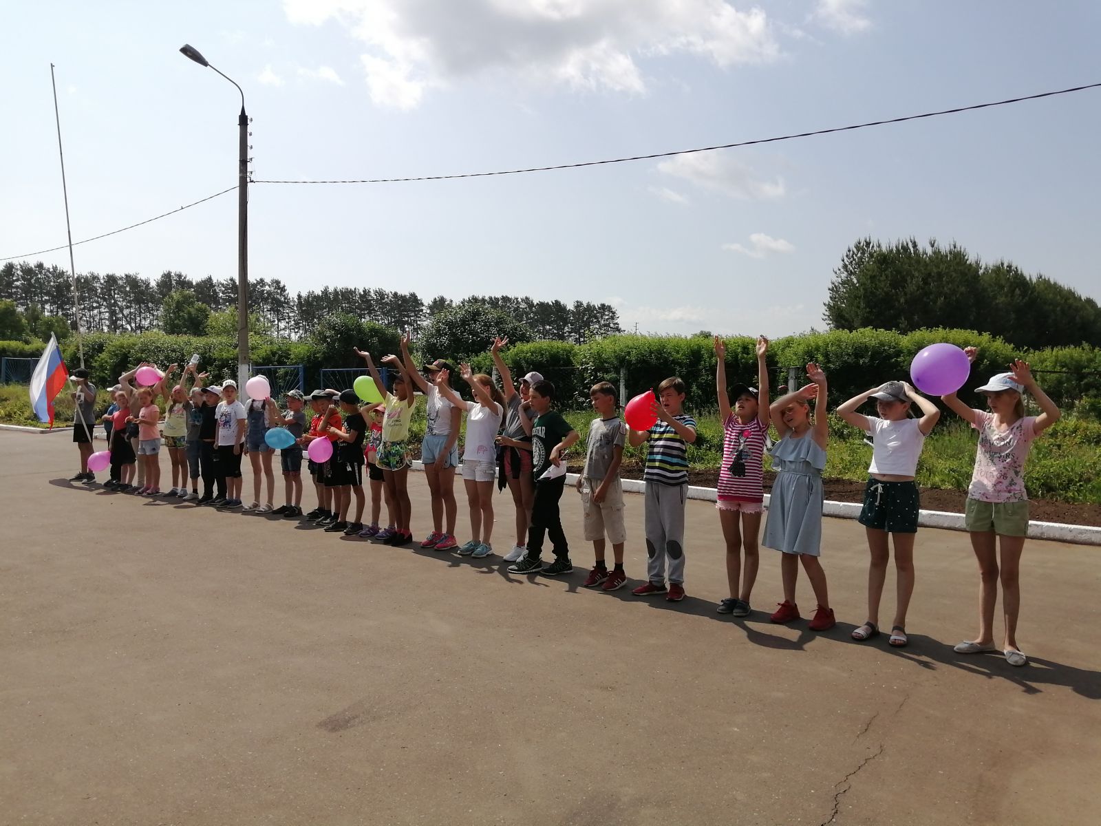 Целью праздника, проходившего в пришкольном лагере, было формирование у детей представлений о России как о государстве, о родной стране; воспитание чувства любви к родному краю, Родине.