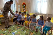 Дети заранее готовились к встрече: нарисовали праздничные рисунки, которые передала воспитатель Светлана Марсельевна для солдат нашего села. Еще воспитанники сада поздравили героя стихами и спели песню! Дети с огромным удовольствием общались с солдатом, ведь для них он уже Герой и пример мужественности и силы!Мунайк «Тургай» балалар бакчасында авылның мобилизацияләнгән солдаты белән очрашу булды. Балалар алдан ук очрашуга әзерләнделәр: тәрбияче Светлана Марсельевна авыл солдатлары өчен бәйрәм рәсемнәре ясадылар. Бакчада тәрбияләнүчеләр дә геройны шигырьләр белән котладылар һәм җыр җырладылар! Балалар солдат белән бик теләп аралашканнар, чөнки ул алар өчен Герой һәм ирлек һәм көч үрнәге!