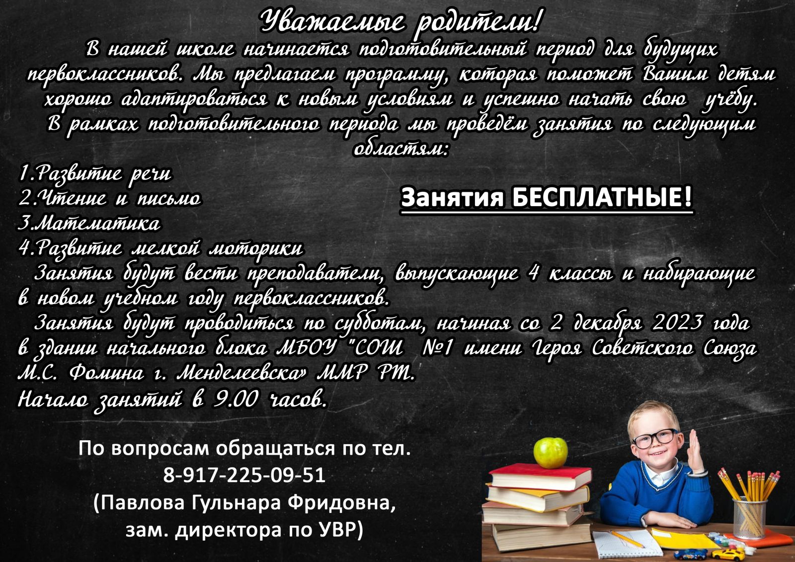 муниципальное бюджетное общеобразовательное учреждение "Средняя общеобразовательная школа №1 имени Героя Советского Союза М.С. Фомина г. Менделеевска" Менделеевского муниципального района Республики Татарстан - новости