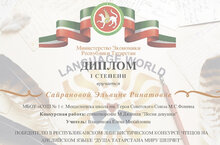 Ученица 9 в класса Э. Сайранова МБОУ «СОШ №1 им. Героя Советского Союза М.С. Фомина г. Менделеевска» приняла участие в Республиканском Лингвистическом конкурсе чтецов на английском языке «Душа Татарстана миру шепчет».