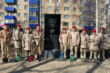 Юнармейцы отряда имени В. В. Георгиевского приняли участие в акции «Верни Герою имя». Юнармейцы убрали снег на Аллее Героев, почистили памятники.