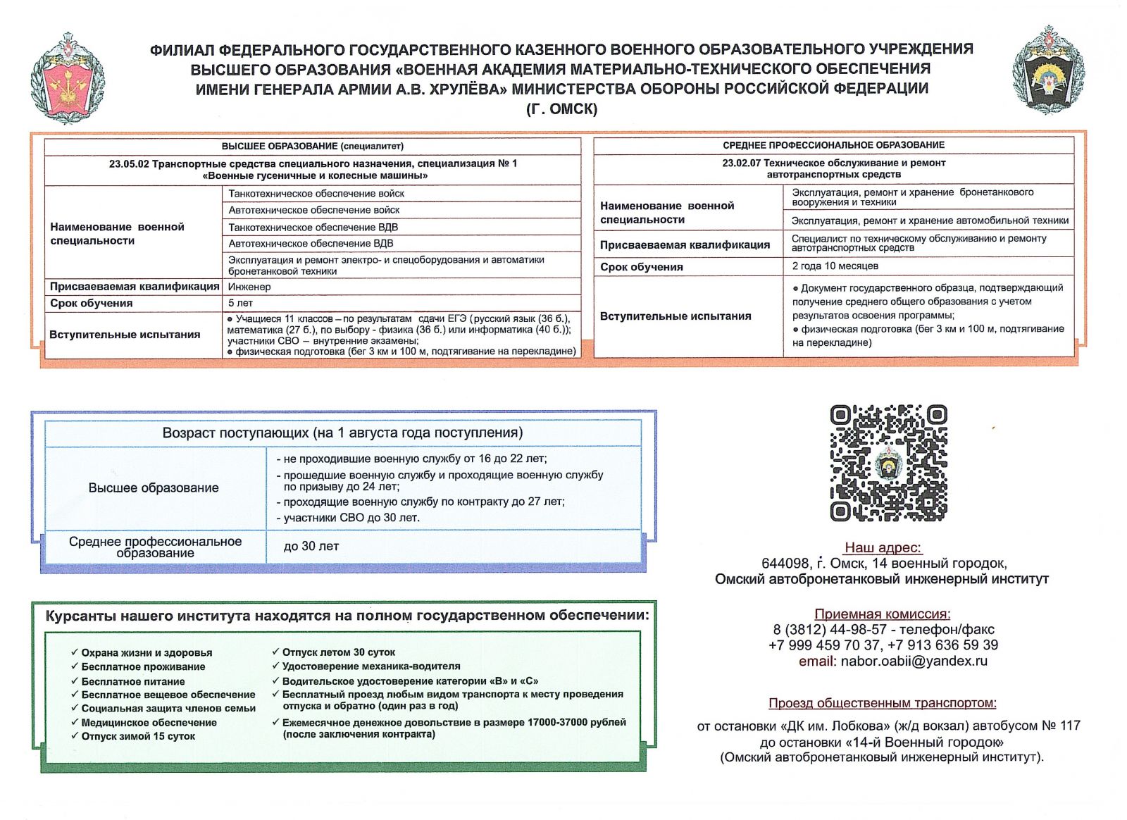 - Филиал Военной академии материально-технического обеспечения имени генерала армии А.В. Хрулёва г. Омск