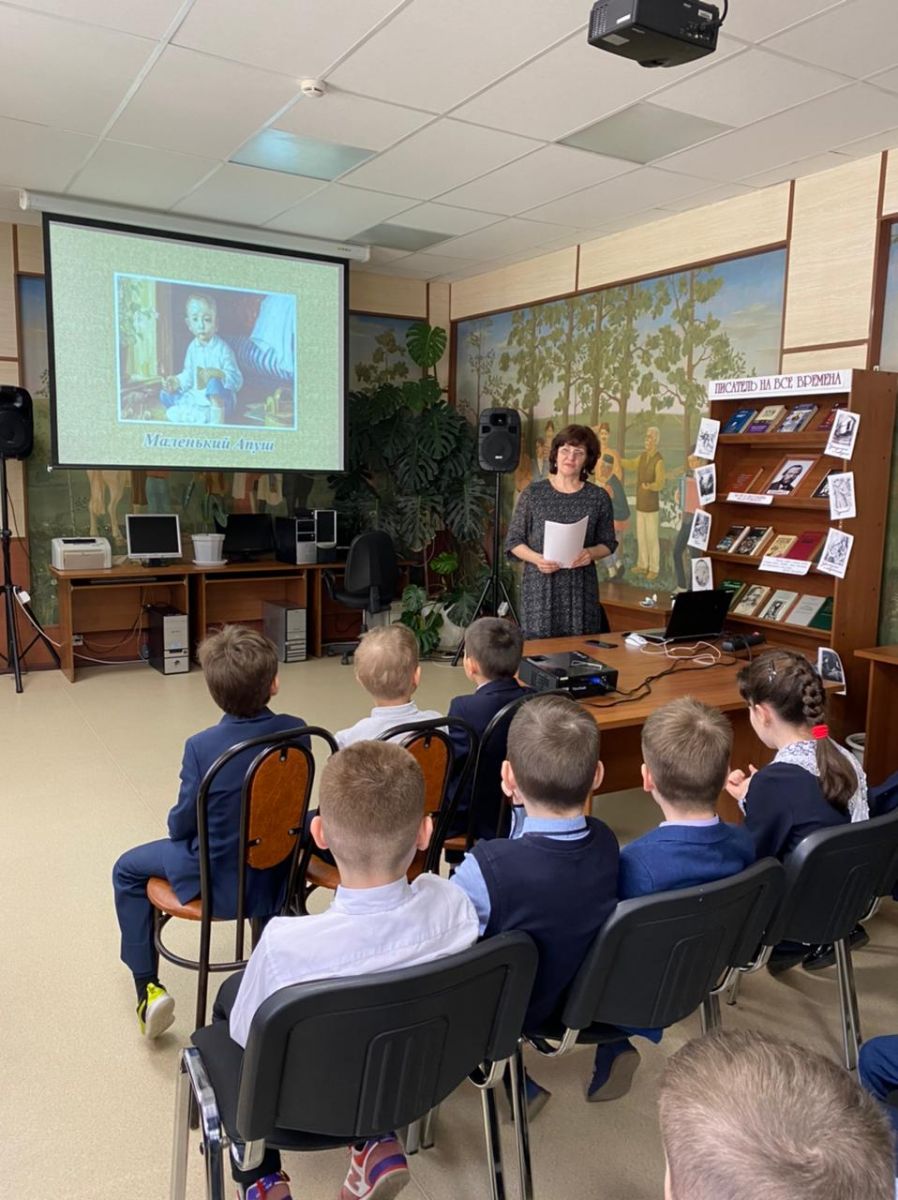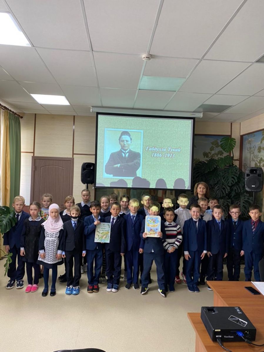 Опубликовано: 27.04.202127 апреля учащиеся 2Б класса МБОУ «СОШ №1 им. Героя Советского Союза М.С. Фомина г. Менделеевска» с учителем родного языка и литературы Ибатуллиной Ф.А. посетили Центральную библиотеку. Работники библиотеки подготовили для учащихся интересную викторину, посвящённую жизни и творчеству великого татарского поэта Г. Тукая.