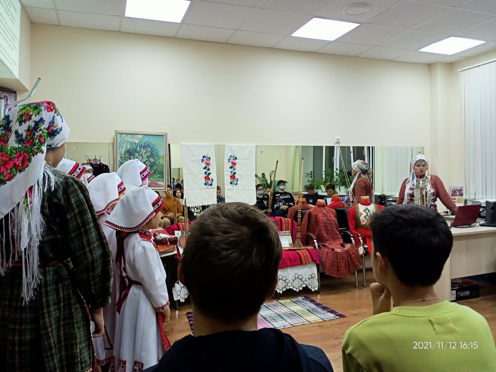 Учащиеся 8 Б класса МБОУ «СОШ №1 им. Героя Советского Союза М.С. Фомина г. Менделеевска» приняли участие в интерактивно-познавательном мероприятии "Менделеевск многонациональный: культура и традиции удмуртов". Ребята узнали много нового об удмуртской культуре, ее традициях, прослушали национальные песни в исполнении удмуртской воскресной школы «Чингыли». Присутствующие посмотрели на выставке ткачество, разнообразную вышивку, работы из глины и соломы. Каждый желающий смог примерить элементы национальной удмуртской одежды. Посетить данное мероприятие стало возможным благодаря Пушкинской карте.