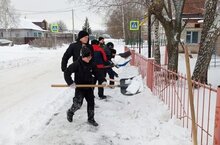 Наши ученики активно участвуют в уборке снега на территории школы.