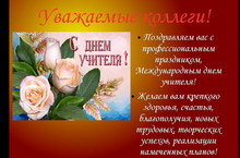 Уважаемые учителя - ветераны, ветераны педагогического труда, учителя - коллеги. Поздравляем Вас С Международным Днем Учителя. Желаем Вам крепкого здоровья, счастья, мира и добра.