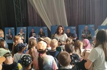Дети посетили редакцию газеты "Менделеевские новости", здесь ребят встретила радушная хозяйка, главный редактор газеты, Джулия Искандарова, она рассказала об истории издания, познакомила со своей командой. Анжела Малюга провела викторину, дети отвечали на вопросы о газете и городе, за правильные ответы вручала призы, Светлана Федотова подарила аквагрим в ярких сказочных красках. Команда редакции подготовила для детей сюрприз, неожиданно появилась ростовая кукла Твиле Кота и угостила