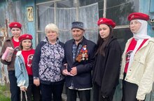 В у ветеранов слезы на глазах и ком в горле мешают говорить, но они рады, что юнармейцы посетили их, прикололи георгиевскую ленту , подарили открытку в виде письма-треугольника и общее фото на память для истории.