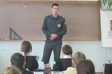 Бүген Яр Чаллы шәһәреннән полиция майоры Фахрутдинова А.А. һәм Марочкин А.В. башлангыч сыйныф укучылары белән очраштылар...