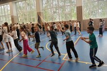 Новый день в лагере начался с утренней зарядки — традиционного начала нашего дня положительными энергиями и активацией тела!