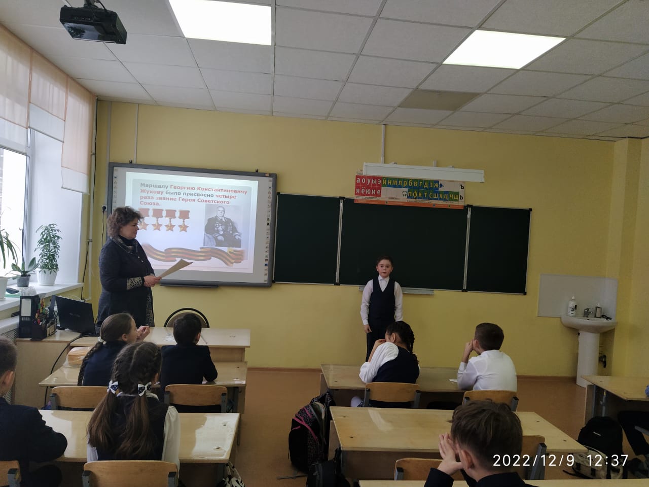 Россиядә Ватан Геройлары көне-безнең илдә ел саен 9 декабрьдә билгеләп үтелә торган истәлекле дата. Безнең мәктәптә бу истәлекле көнгә багышланган чара узды.