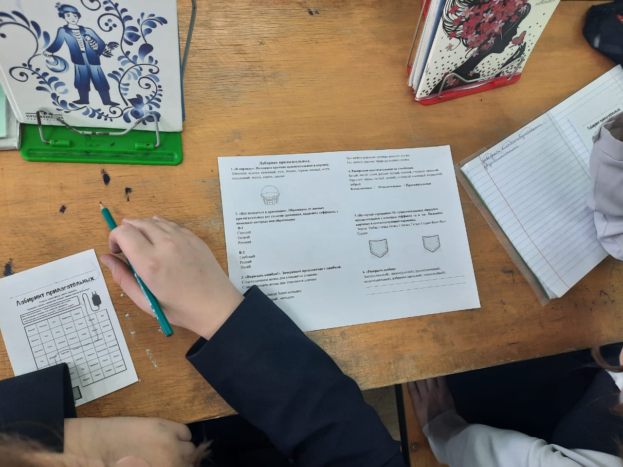 Туган телләр атналыгы кысаларында 6А сыйныфта рус теле буенча "Сыйфатлар лабиринты"дәресе узды. Балалар ребусларны хәл иттеләр, биремнәрне үтәделәр.