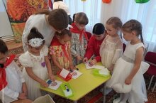 Получились очень красивые поздравительные открытки, которые потом дети подарили гостям!Безнең мәктәпнең «Беренчеләр хәрәкәте» активистлары «Алёнушка» балалар бакчасына бардылар.