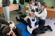 Девушки, в свою очередь, соревновались в мастерстве оказания первой помощи, демонстрируя умение быстро и правильно перевязывать раненых.
