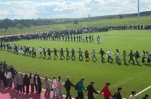 В Менделеевске в рамках благотворительной акции "Цепная реакция" выстроили «Цепочку добра» из 1714 человек . Наша школа,с 5 по 9 классы, приняла участие в этой акции.