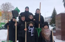 Кадеты 7Б класса оказали помощь сотрудникам Кинотеатра "Юность" в очистке снега на территории мемориала у Вечного огня.