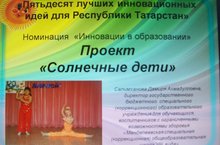 В Х Республиканском конкурсе 50 лучших инновационных идей для Республики Татарстан в номинации "Инновации в образовании" наша школа принила участие с проектами "Солнечные дети" ( Салимханова Д.А.,Тихонова Н.В., Архипова Н.А.) и «Натуральные материалы и фольклор в практической арт - терапии» (Крестьянинова Н.П.).....