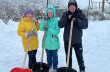 Несмотря на то что каникулы, сотрудники приходят и чистят территорию школы от снега.