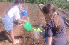 10.06.2025 г ребята посещающие лагерь "Юнга" поливали грядки пришкольного участка.